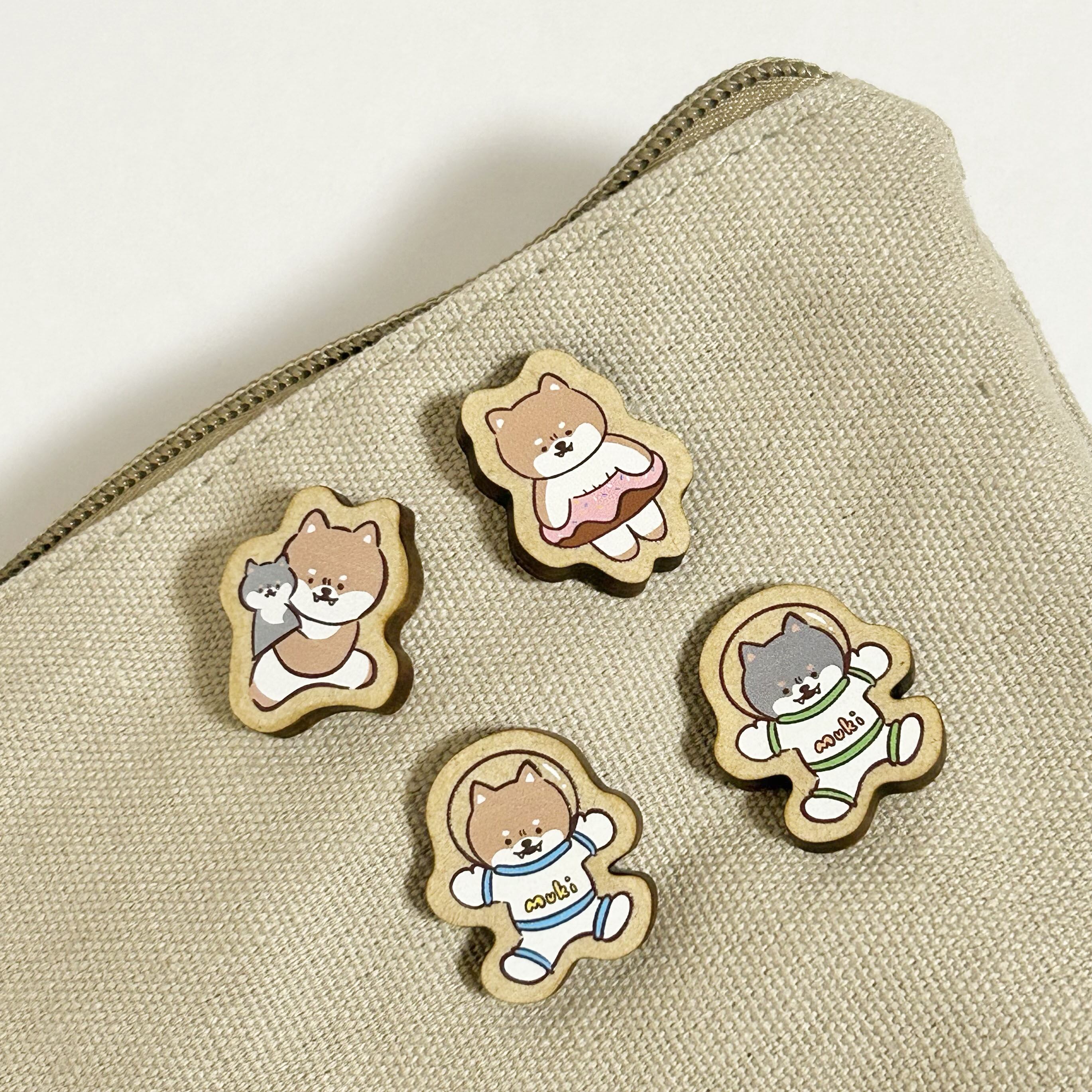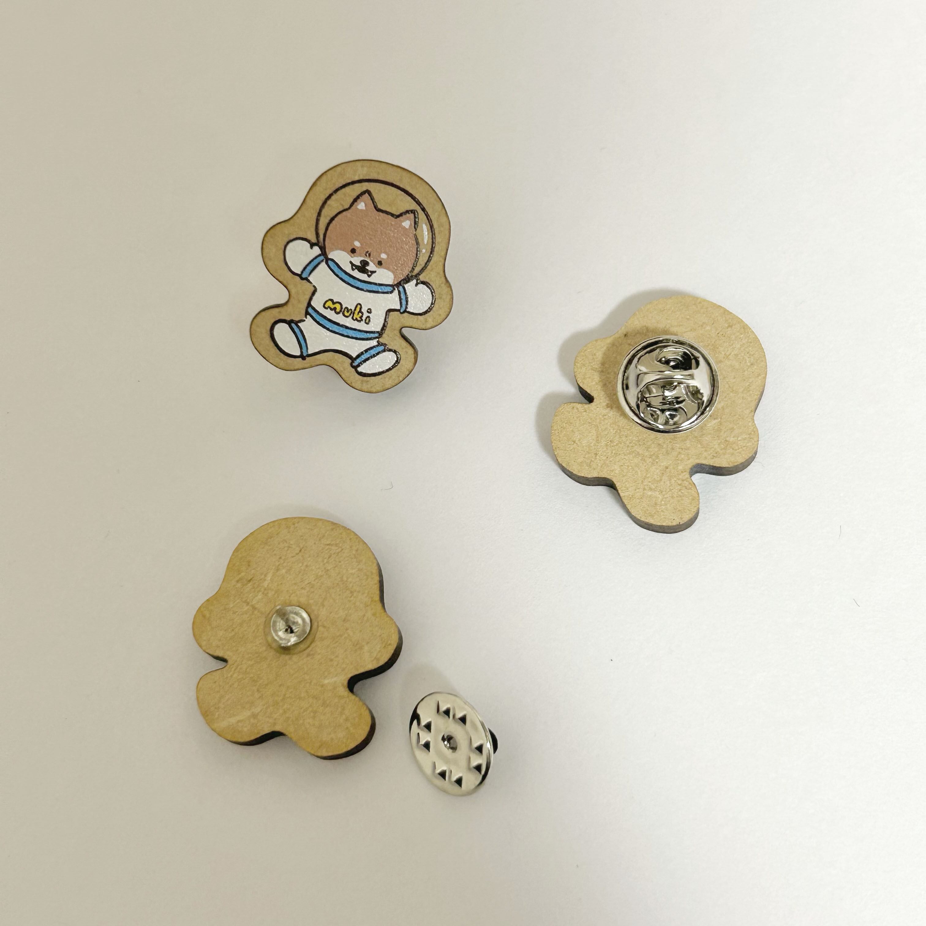”むきしば”のピンバッチです